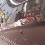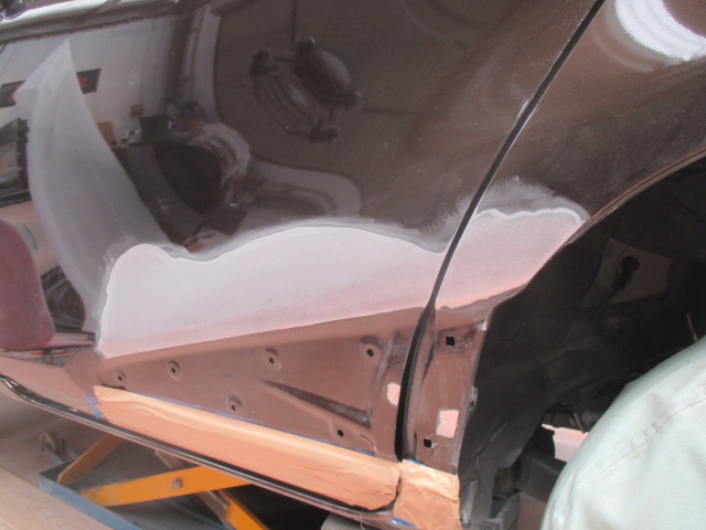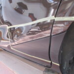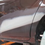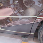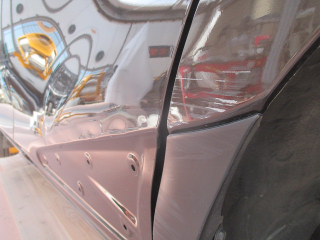 当店ではパテ盛りに頼ることなく、なるべく元の形を復元するようにならし鈑金を行い薄いパテ処理で仕上げています。ラインの復元はもちろんモールとの隙間もこの鈑金の状態できっちり復元してから薄いパテ処理を行います。通常の鈑金よりも時間は多少かかる作業ですが、パテやサフェーサーの厚盛りをしなくて済みますのでトラブルの可能性が低く長期間綺麗な状態を保つことが可能です。