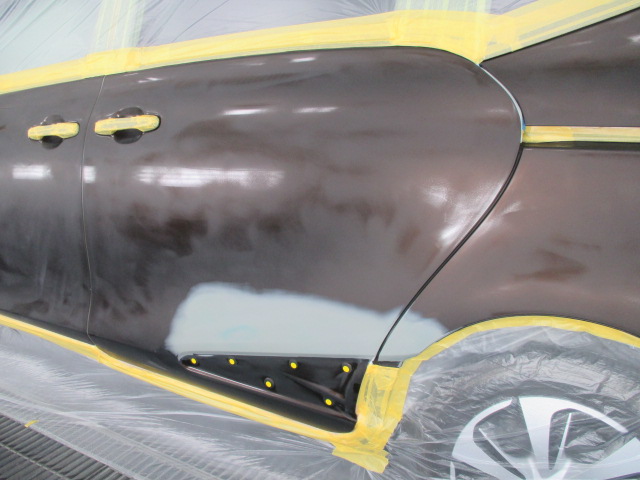 塗装ブース内で調色した塗料を綺麗に吹き付けして完成です。折角丁寧に鈑金しても綺麗に塗装できなくては意味がありません。